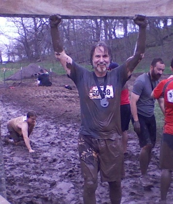 Halfway through, ducking beneath the strands of barbed wire, I slipped and fell on my left side. I was immediately covered with the thickest, stickiest mud I’ve ever been in or even seen. When I made my way out of the pit, I carefully slid and slipped across the treacherous last thirty yards. One of the workers hung a medal around my neck and I lifted both muck-plastered arms and shook my hands above me in celebration.
